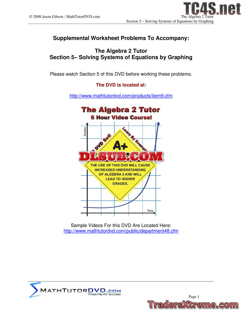 05 Algebra 2 Tutor Solving Systems Of Equations By Graphing - JPG Image File