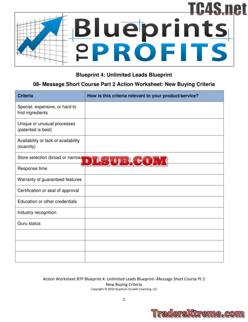 Ulb 08 Message Short Course Pt2 New Buying Criteria Action Worksheet - JPG Image File