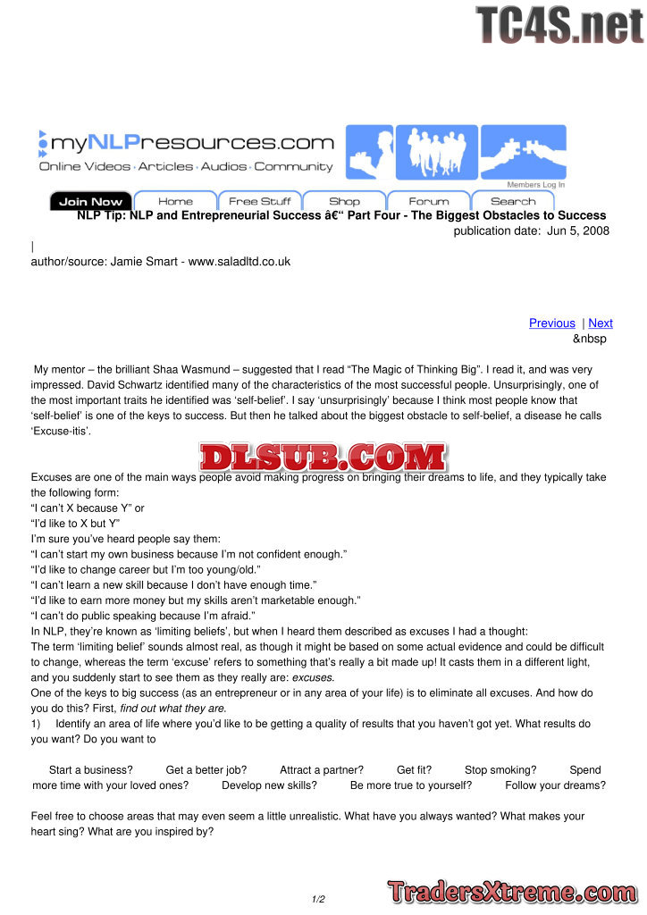 Nlp And Entrepreneurial Success Part Four The Biggest Obstacles To Success - JPG Image File