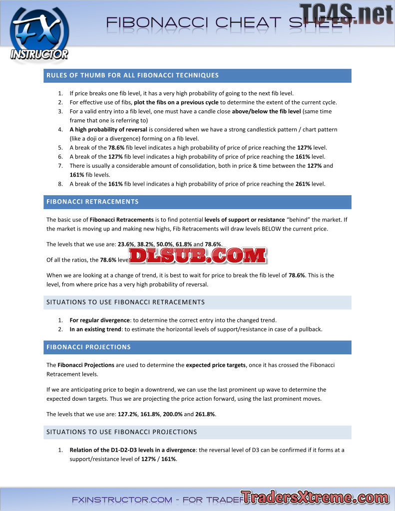 Fxi Fibonacci Cheat Sheet - JPG Image File