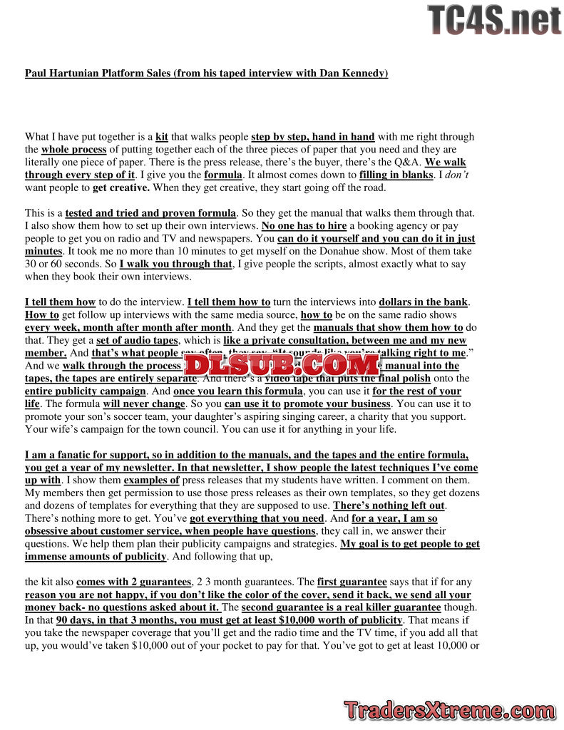 Hartunian Platfrom Sales From Taped Interview - JPG Image File