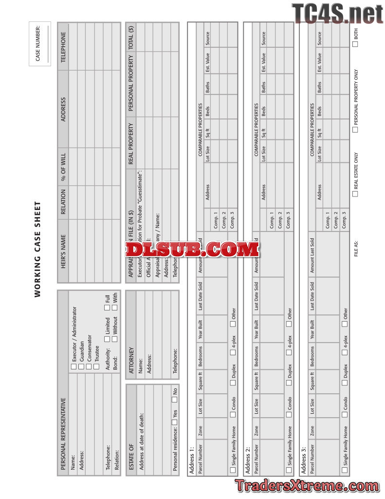 Working Case Sheet - JPG Image File