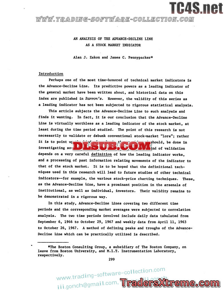 Alan Zacon An Analysis Of The Adv Decl Line As A Stock Market Indicator Article - JPG Image File