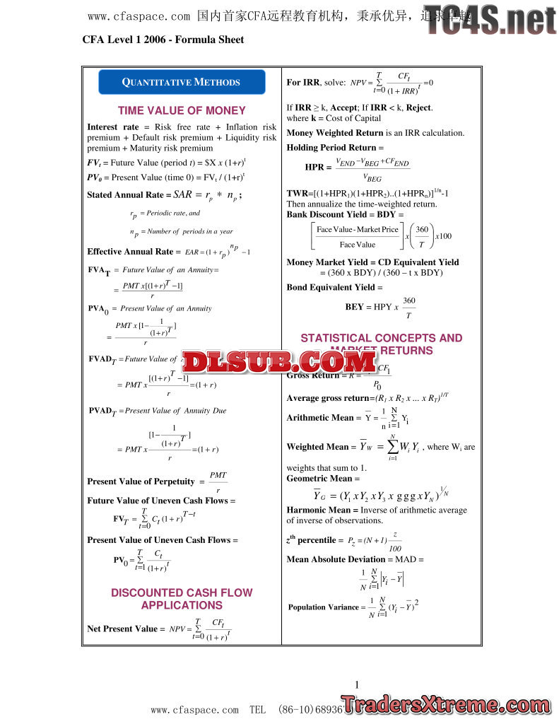 Cfa Level 1 Formula - JPG Image File