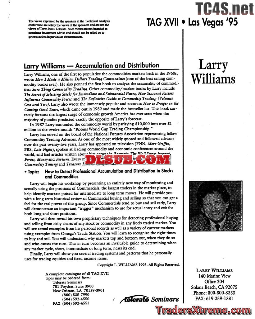 Larry Williams How To Detect Professional Accumulation And Distribution In Stocks And Commodities