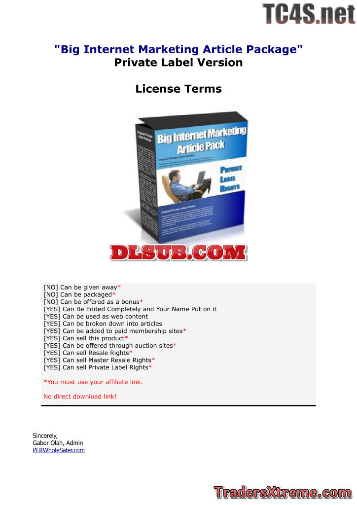 License Terms Big Internet Marketing Article Pack - JPG Image File