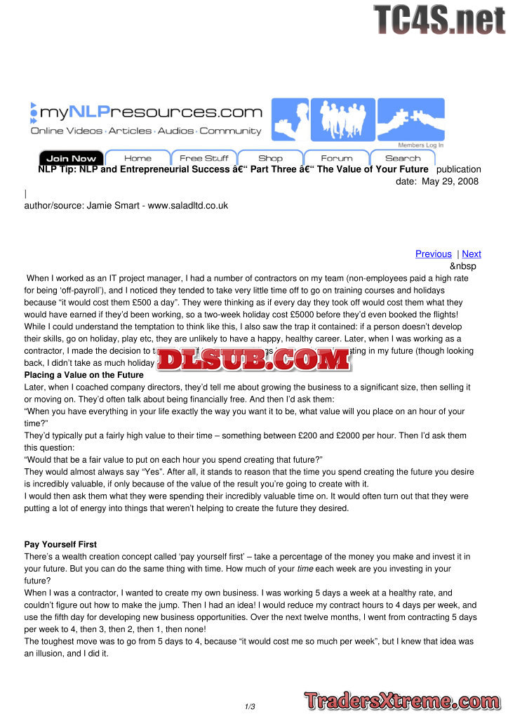 Nlp And Entrepreneurial Success Part Three The Value Of Your Future - JPG Image File