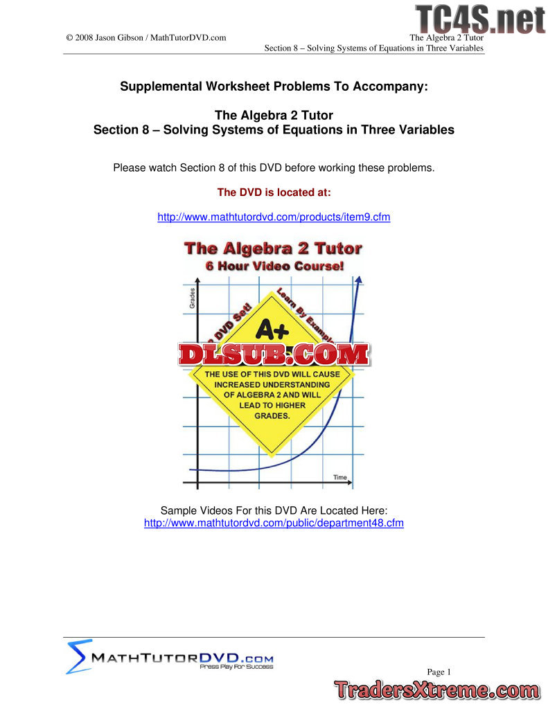 08 Algebra 2 Tutor Solving Systems Of Eqns In 3 Variables - JPG Image File