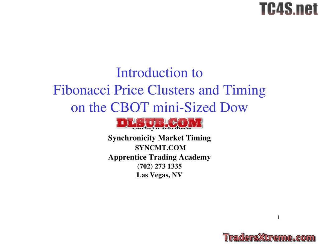 Boroden Carolyn Introduction To Fibonacci Price Clusters And Timing On The Cbot Mini Sized Dow - JPG Image File